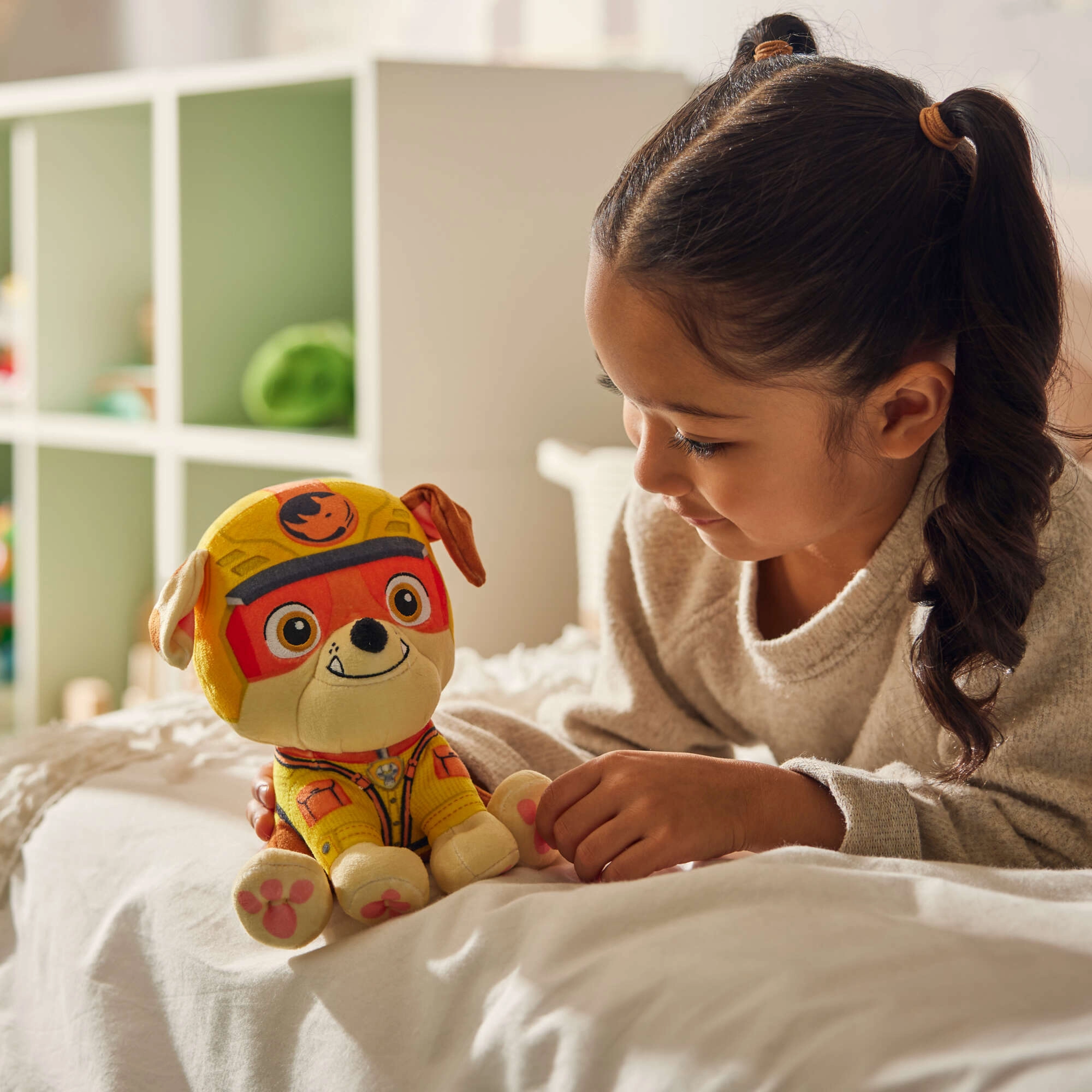 Door de stabiele zittende positie is hij perfect om mee te spelen of om op een plank neer te zetten. Kinderen genieten van knuffelen voor het slapengaan, rollenspellen met reddingsmissies en het prikkelen van de fantasie.