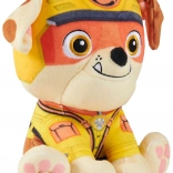 De schattige pluchen hond Rubble uit de serie PAW PATROL Jungle Pups maakt alle kleine fans blij. Hij is zacht en knuffelig en ideaal om mee te knuffelen en voor fantasierijk spel. In de typische gele uitrusting van de bouwheld is hij klaar voor elk avontuur. Formaat ca. 18 cm, perfect voor kinderhandjes.