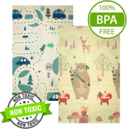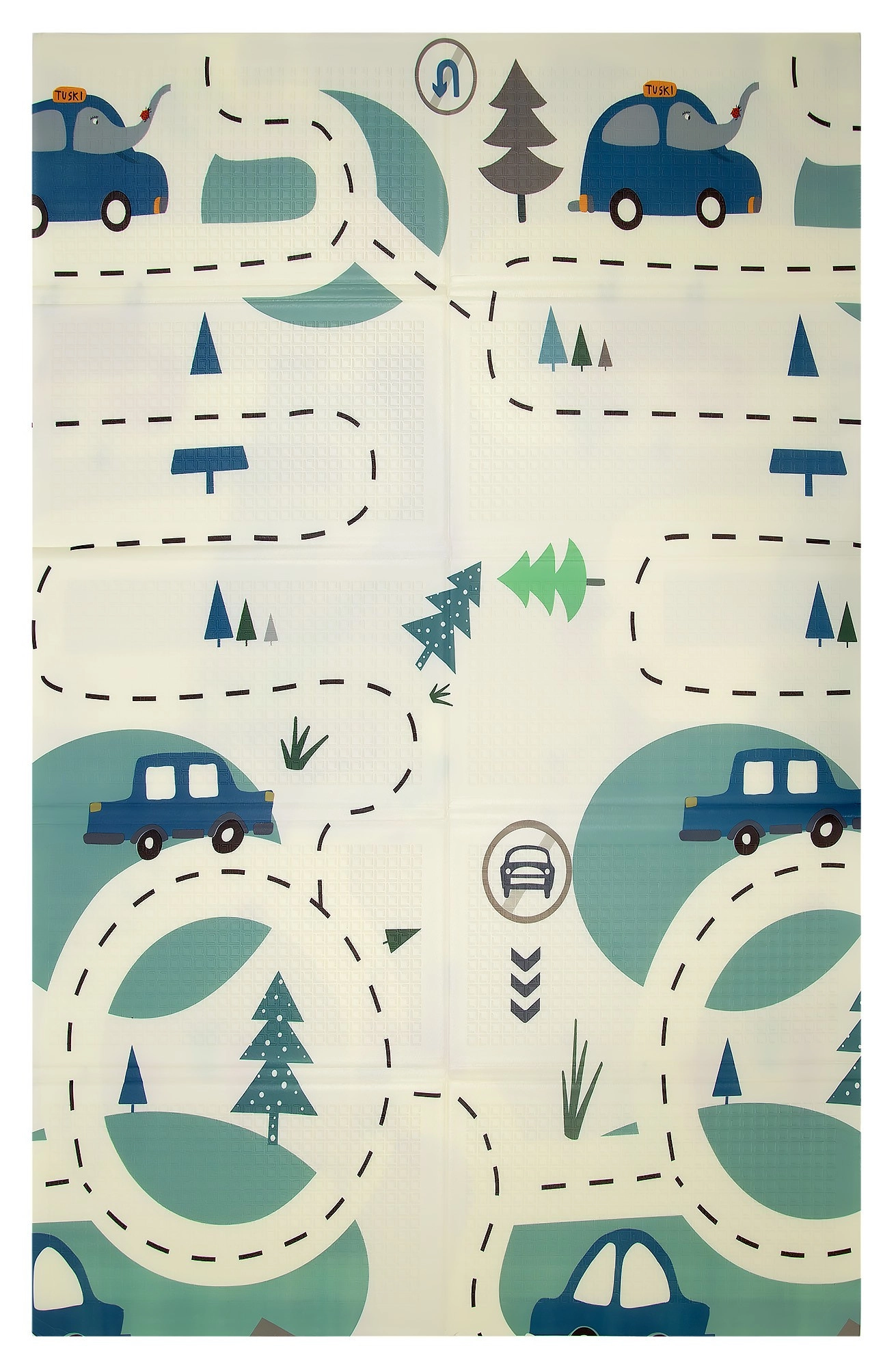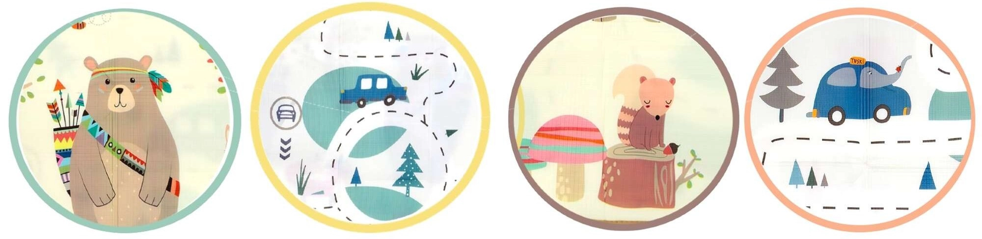 Eén zijde met schattige dieren voor de kinderkamer, de andere met wegen en autootjes voor spel met speelgoedauto’s. Gemakkelijk te matchen met het interieur en de stemming van het kind.