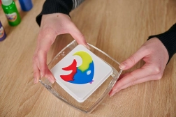 Na plaatsing in de voorbereide oplossing verandert het platte motief in een zacht 3D-figuurtje met prachtige kleuren – klaar om mee te spelen en neer te zetten.