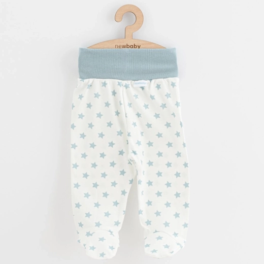 Comfortabele en zachte baby half-schoentjes New Baby Classic II in een praktisch setje van 3 stuks, met een zachte stof en een brede, niet-knellende tailleband die het buikje van de baby beschermt. Gemaakt van 100% katoen voor comfort de hele dag. De set bevat mintkleurige half-schoentjes, een variant met dinosaurussen en met sterretjes.