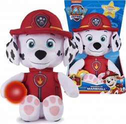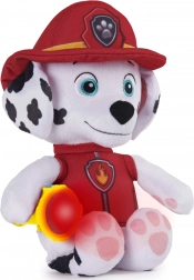 De pluche hond Marshall uit PAW PATROL is een zachte dalmatiër in rode brandweeruitrusting, gemaakt om te knuffelen en om ’s avonds mee in slaap te vallen. Dankzij het licht in de zaklamp en de zachte melodieën verandert hij in een betrouwbare maatje dat kinderen kalmeert bij het inslapen.