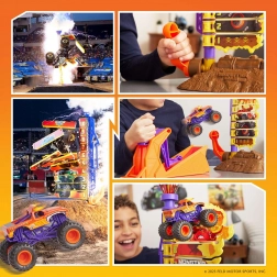 De set is ideaal voor solo-spel en wedstrijden met vrienden. De doordachte constructie met stevige basis in “dirt”-trackstijl, opvallende kleuren en authentieke Monster Jam-graphics versterken de realistische beleving. De truck op schaal 1:64 met grote banden en hoge ophanging verwerkt landingen soepel en is klaar voor de volgende run.