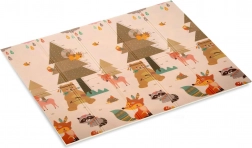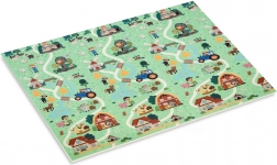 Eén zijde met bosdieren en lengtemeters, de andere met wegen en een dorp. Prikkelt de verbeelding, ondersteunt de motoriek en biedt steeds nieuwe spelletjes.