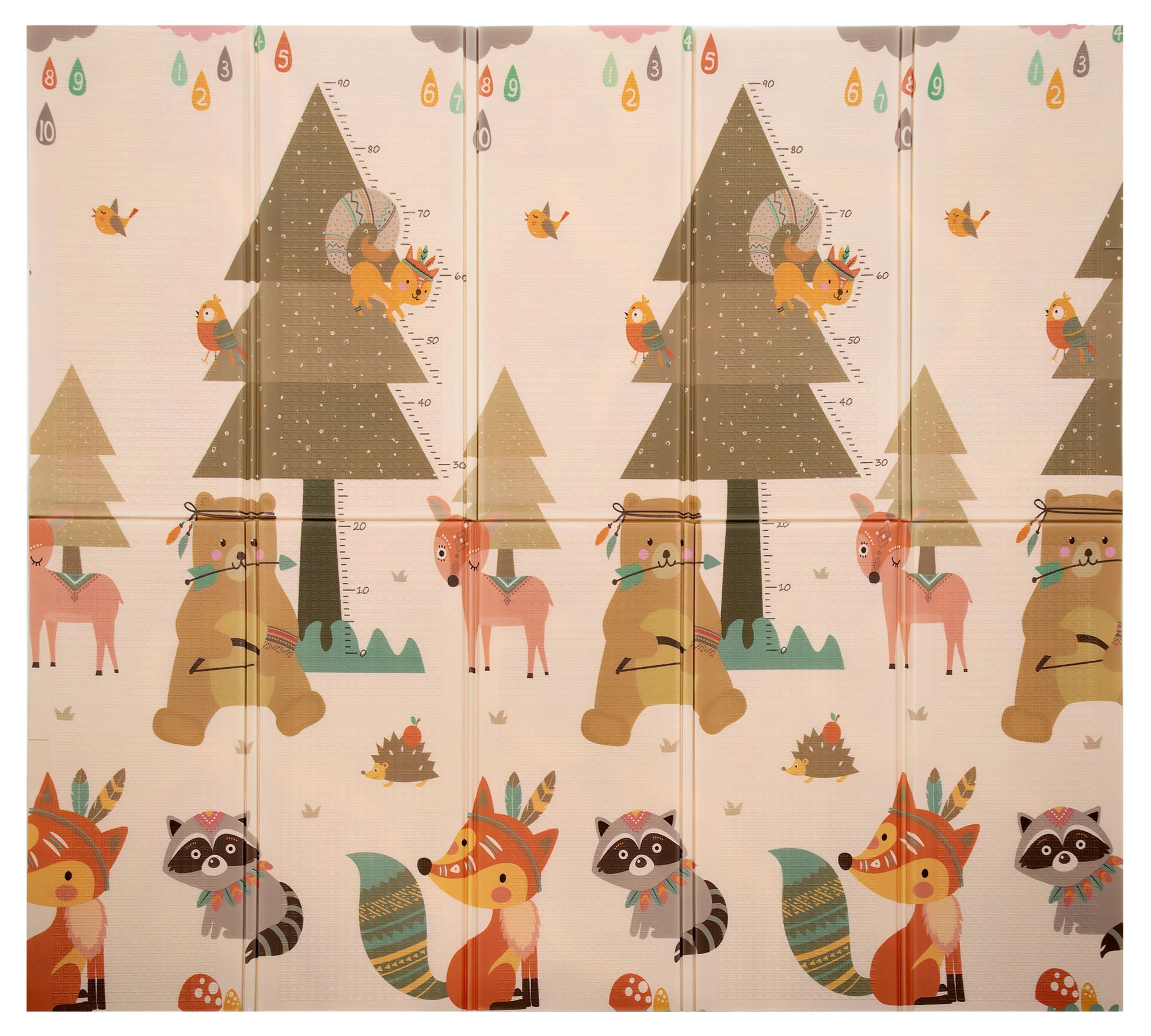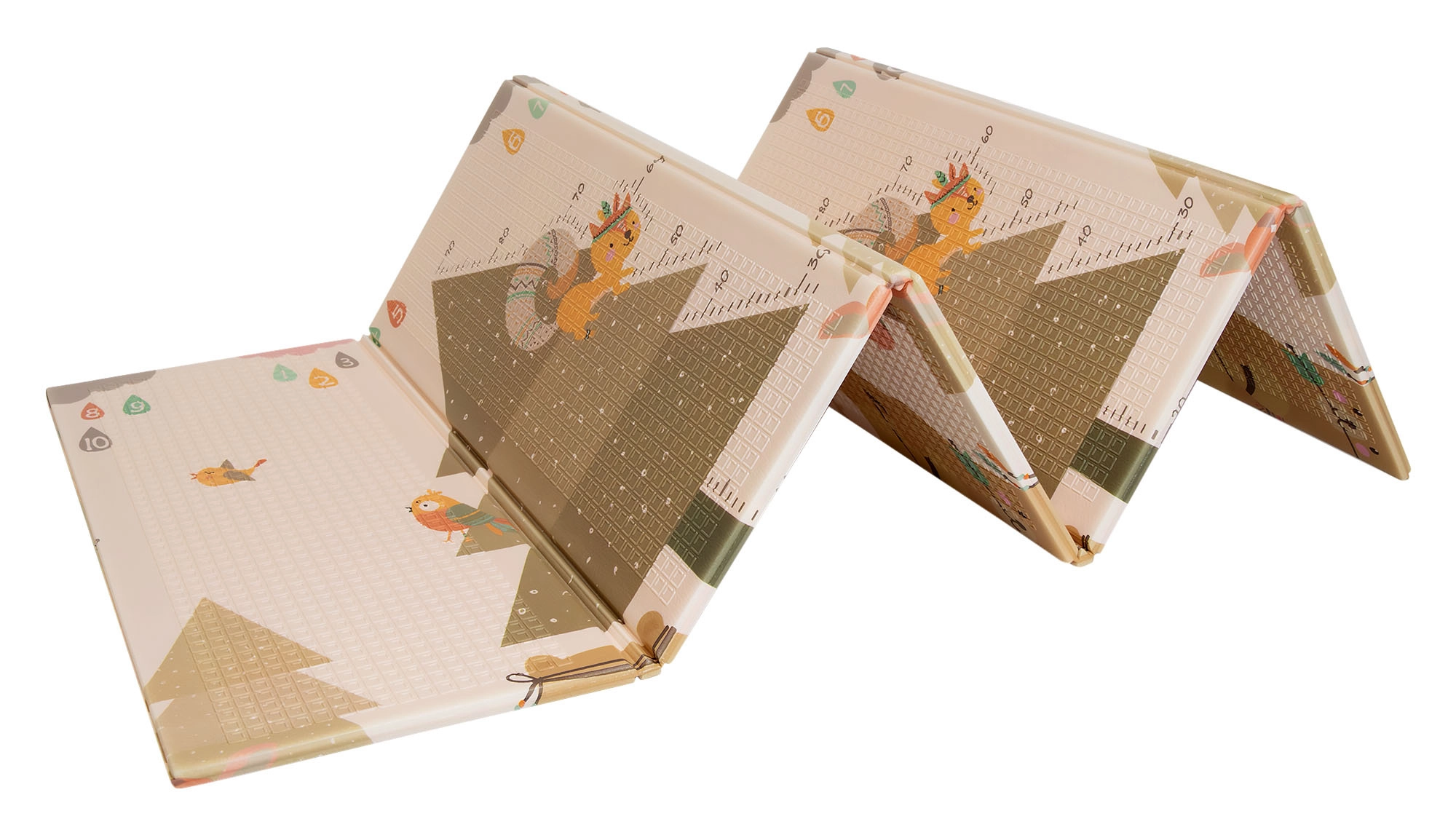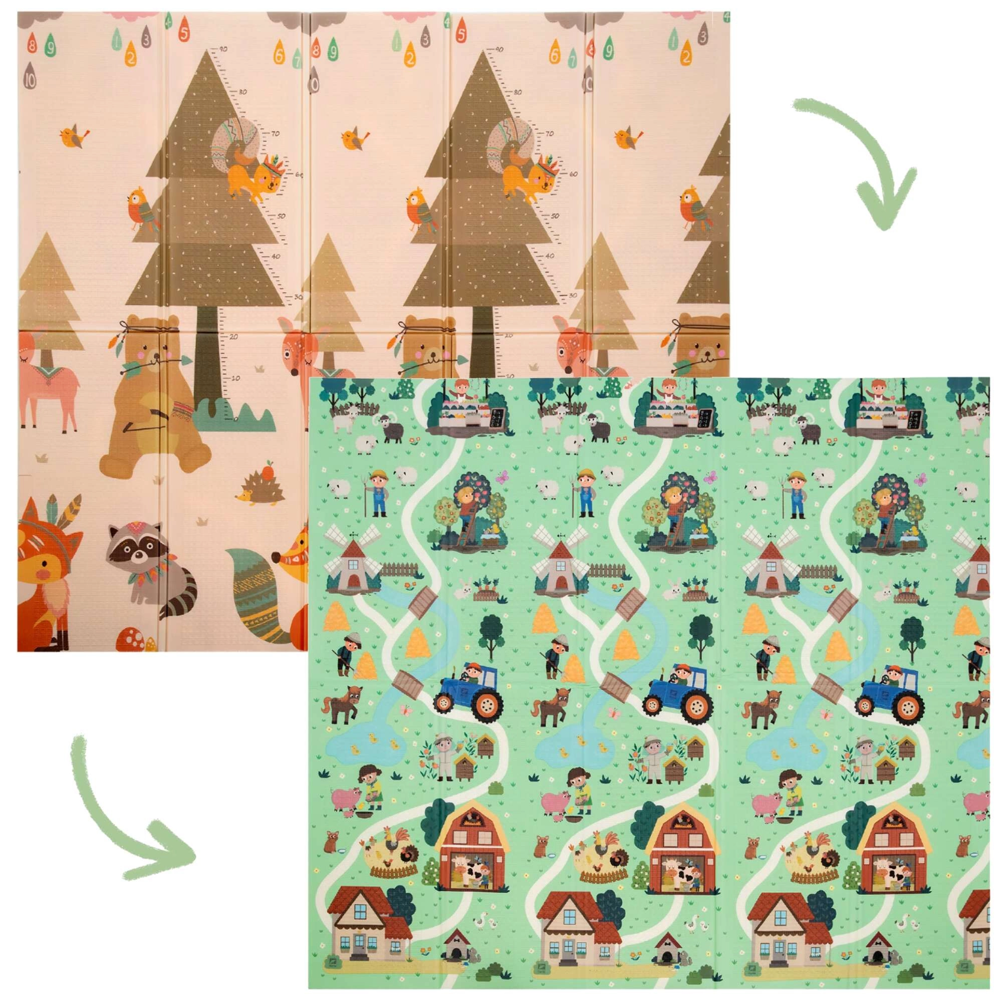 Premium XPE-schuim is geurloos, niet-toxisch en zeer duurzaam. De mat dempt schokken, beschermt bij vallen en isoleert tegen koude vloeren – ideaal voor tummy time, leren kruipen en de eerste stapjes. De dubbelzijdige print met zachte kleuren past natuurlijk in het interieur.