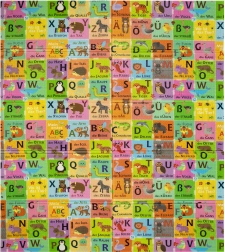 De ene kant leert het Duitse alfabet met dieren, de andere biedt een speelse plattelandsscène. Spel en leren in één.