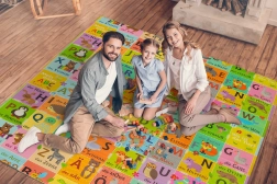 Grote, zachte en dubbelzijdige mat van XPE-schuim biedt kinderen comfort en veiligheid bij spelen, kruipen en de eerste stapjes. Hij is opvouwbaar, waterdicht, makkelijk te reinigen en dankzij de meegeleverde draagtas neem je hem overal mee naartoe – naar de kinderkamer, woonkamer of de tuin. Voldoet aan de Europese veiligheidsnormen en bevat geen schadelijke stoffen.