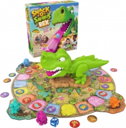 Help de hongerige holbewoners heerlijke snacks te verzamelen en ontwijk de geniepige tong van de dinosaurus in het spel SNACK‑O‑SAURUS REX van Spin Master. Eenvoudige regels, snelle en actievolle gameplay, leuk voor kinderen vanaf 5 jaar en de hele familie. Het doel is om twee paren snacks te verzamelen, maar pas op – de dinosaurus kan je terugsturen of je buit afpakken!