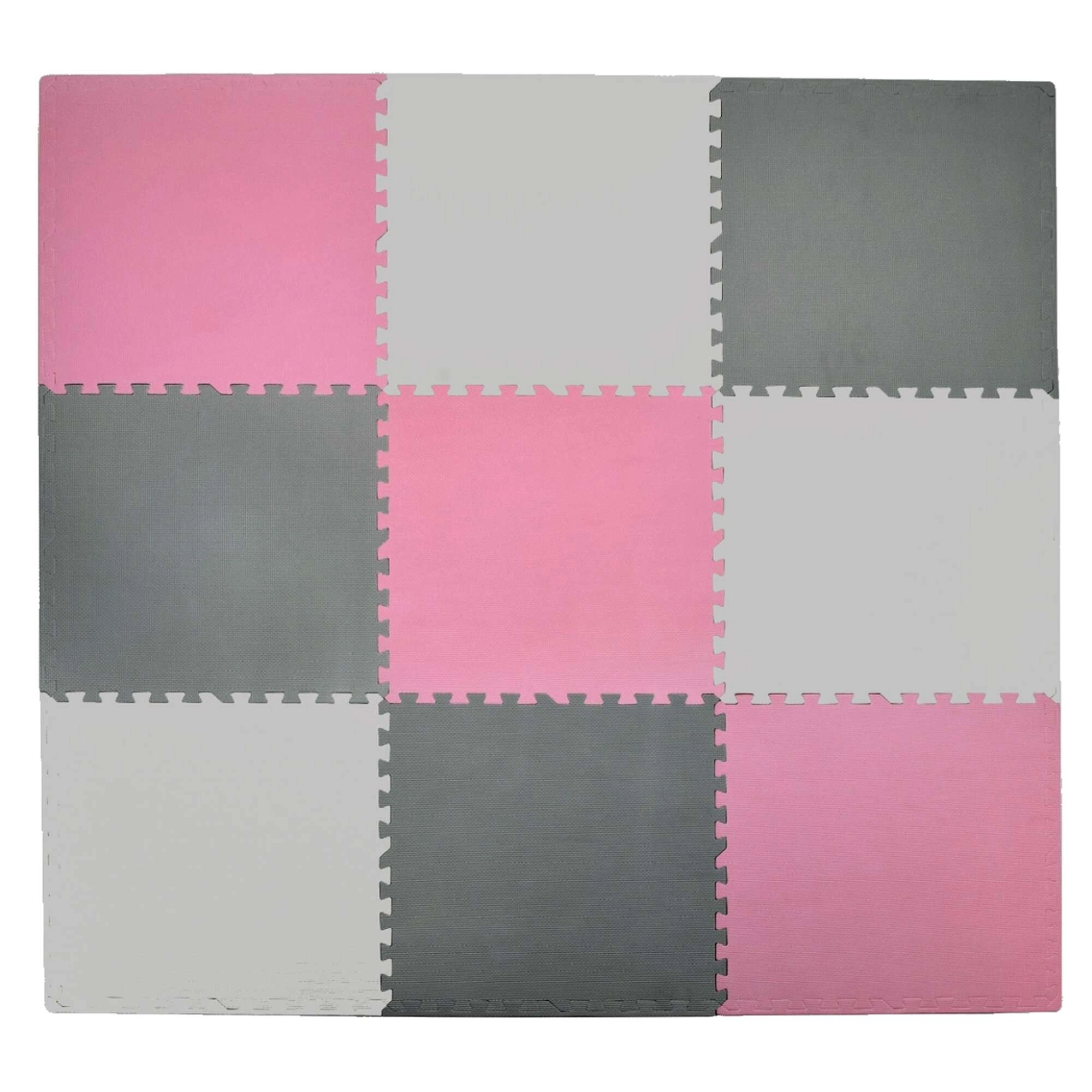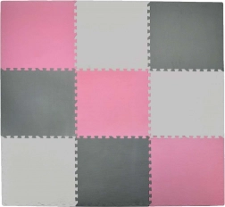 De modulaire vierkanten van 60 × 60 cm met randlijsten worden als een puzzel in elkaar gezet – je past eenvoudig de grootte en vorm van de mat aan en kunt meerdere sets koppelen tot één groot oppervlak. Het waterdichte en hygiënische oppervlak is snel schoon te maken met een vochtige doek en de anti-sliptextuur ondersteunt veilig kruipen en de eerste stapjes.