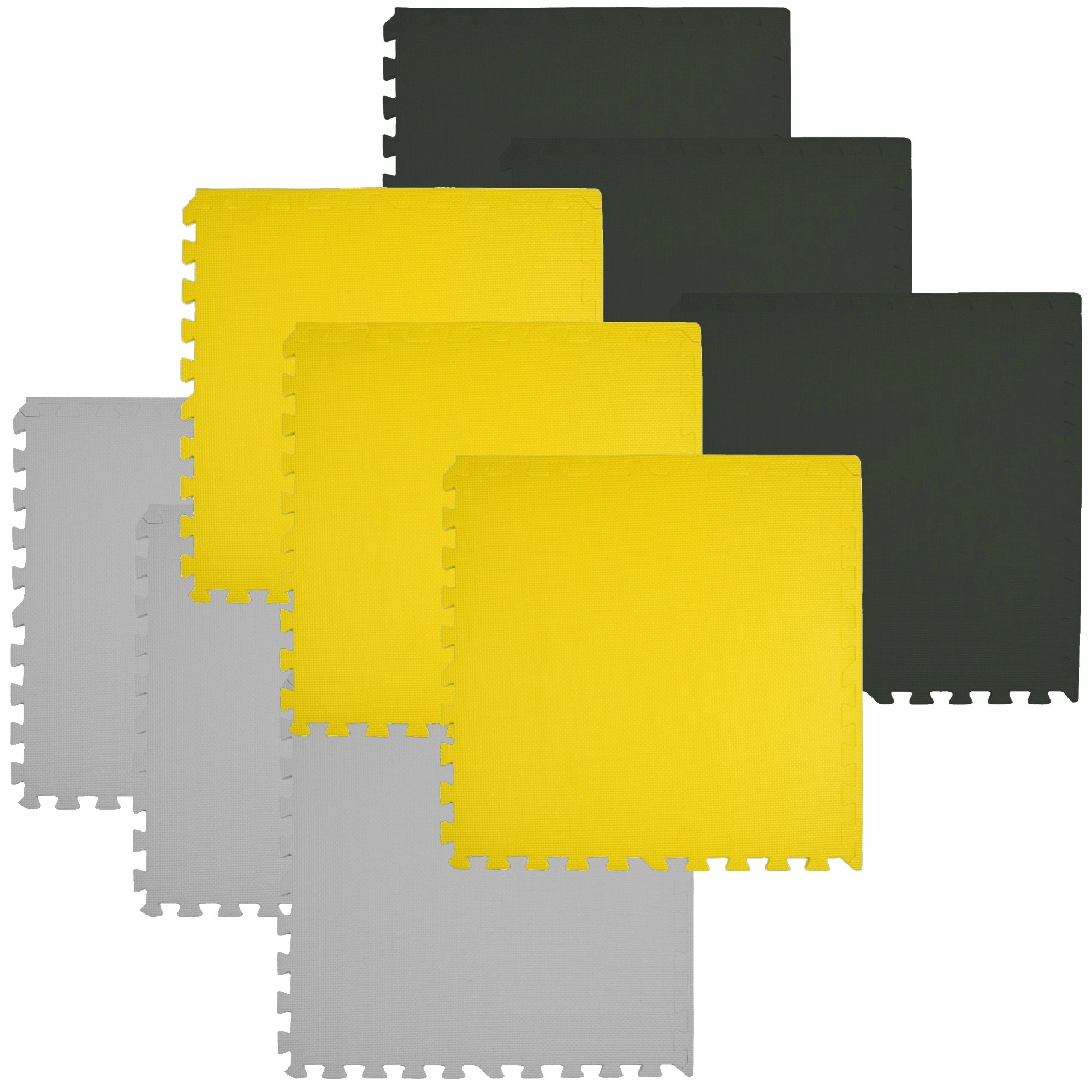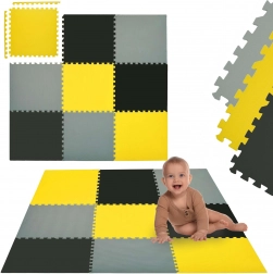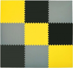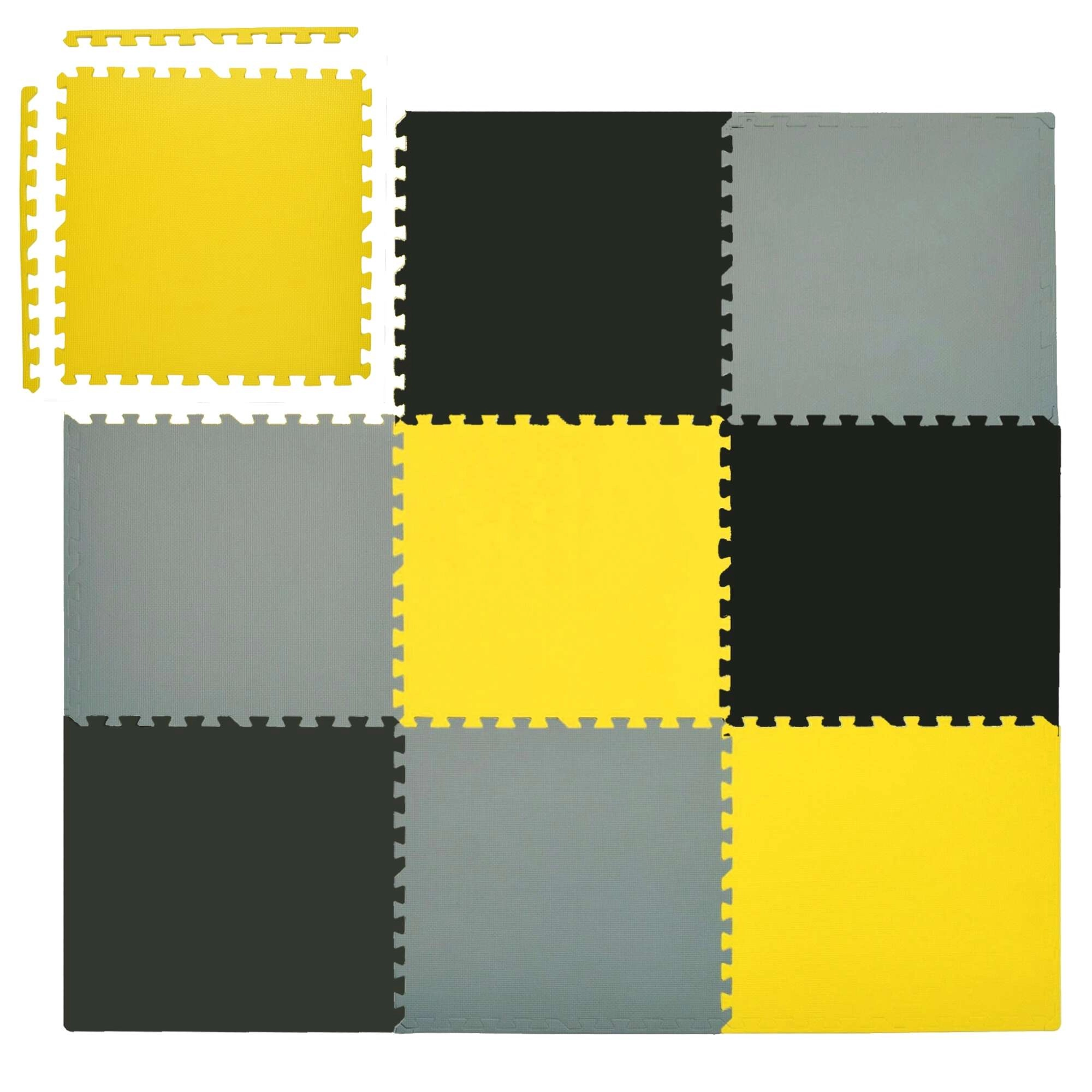 De HUMBI-schuimpuzzel creëert een veelzijdig speeloppervlak in gedempte tinten geel, grijs en zwart. De tegels passen nauwkeurig in elkaar, zodat u snel een veilige speelplek op elke harde vloer legt. Dankzij de dikte van 1 cm isoleert de mat tegen kou en dempt valpartijen, ideaal bij de eerste pogingen tot zitten, kruipen en lopen.