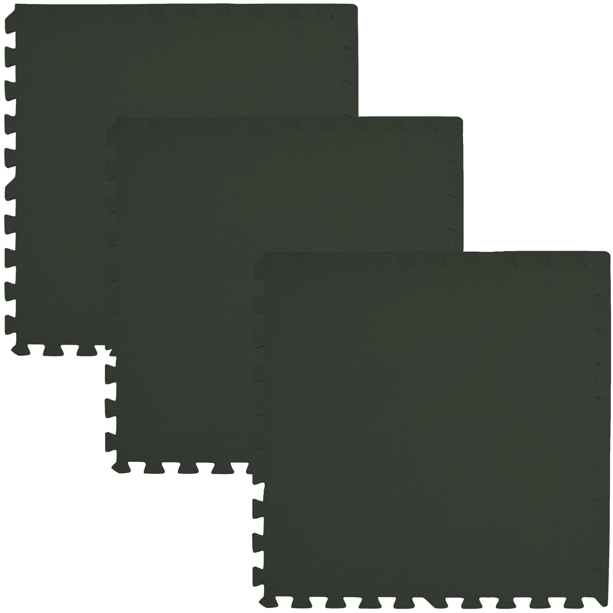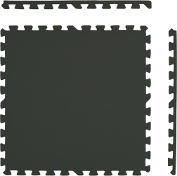 Grote 60 × 60 cm tegels met puzzelsluitingen en 18 randstrips maken het mogelijk snel een netjes afgewerkte oppervlakte te leggen, precies passend bij de ruimte.