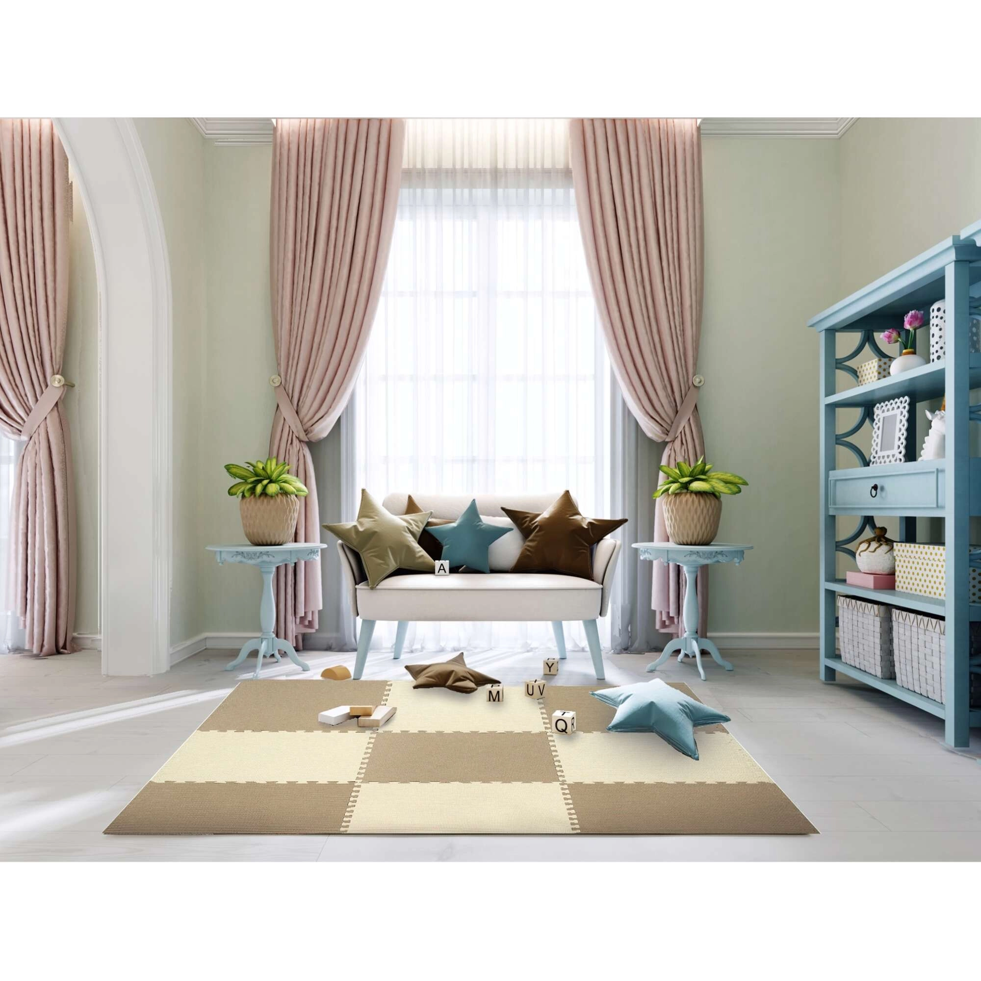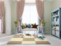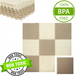 De HUMBI-schuimpuzzel van hoogwaardig EVA-schuim biedt kinderen een veilige plek voor de eerste omrolbewegingen, kruipen en stapjes. Dankzij de dikte van 1 cm absorbeert hij valpartijen uitstekend en isoleert hij tegen kou van tegels, parket en laminaat. Het materiaal is waterdicht, waardoor de mat gemakkelijk te onderhouden is – even afnemen met een vochtige doek is voldoende. Subtiele crème- en beige-tinten storen niet en vullen een modern interieur mooi aan.