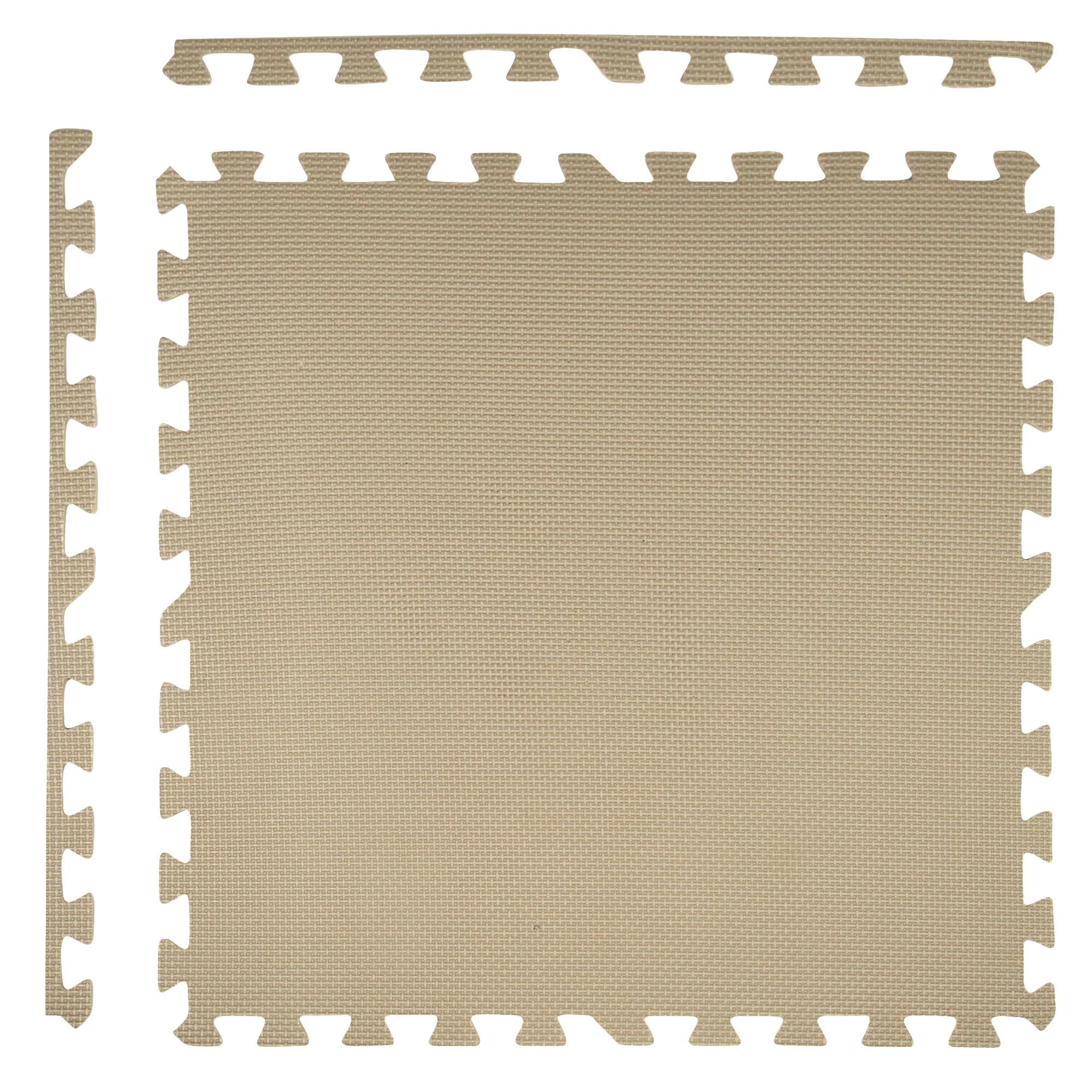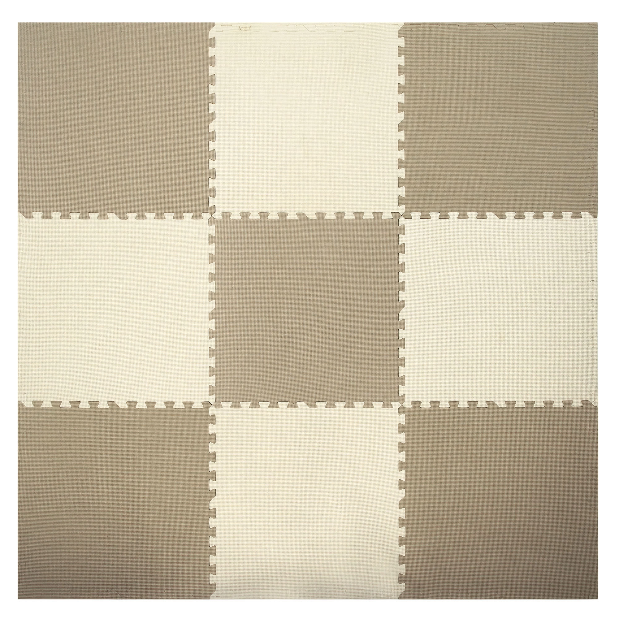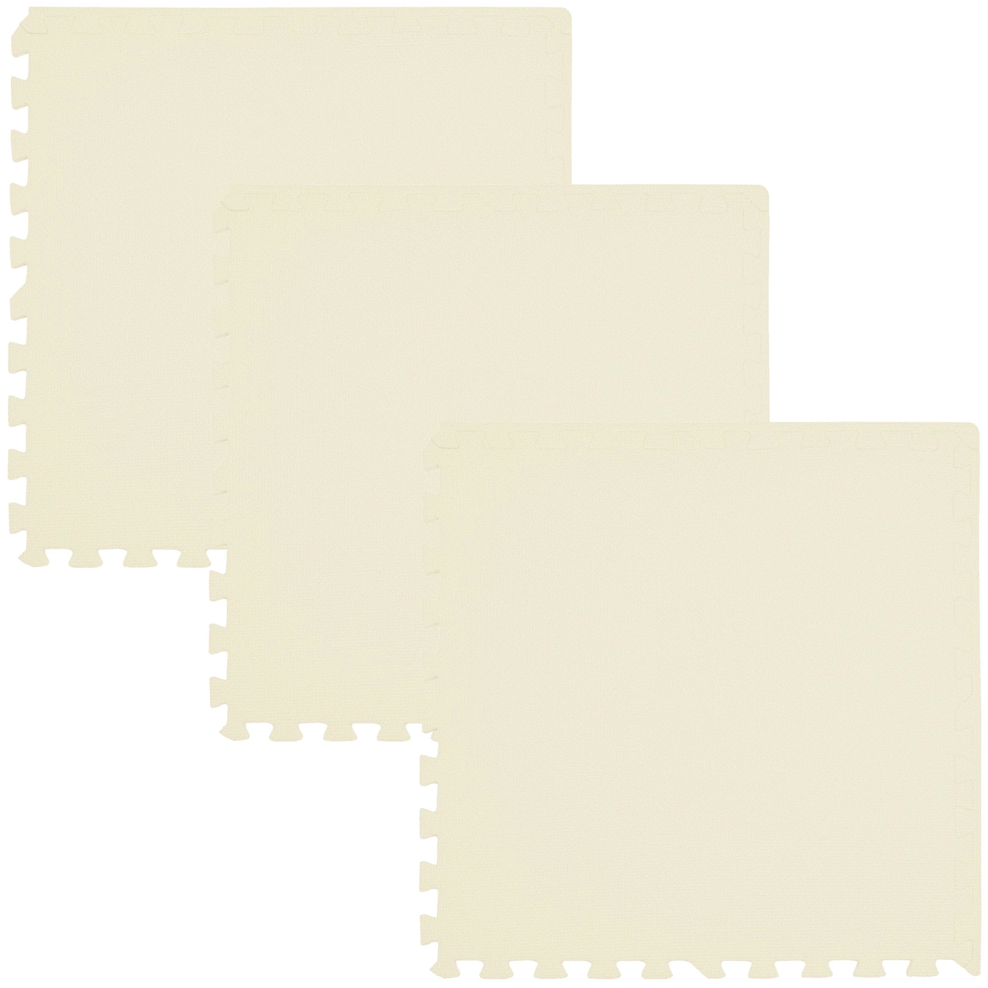 De losse delen van 60 × 60 cm passen precies in elkaar en dankzij de 18 randen creëer je een nette afwerking zonder kartelige randen. Sets kun je onderling koppelen om het oppervlak naar behoefte te vergroten. De mat is antislip en vrij van schadelijke stoffen – zonder ftalaten, formamide, BPA en PVC. Voldoet aan EN 71-1/2/3 en REACH-vereisten, uiteraard met CE-markering.