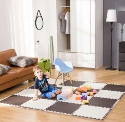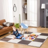 Creëer een veilige en knusse speelzone voor kinderen. De schuimmat van hoogwaardige EVA is zacht, elastisch en vriendelijk voor de kinderhuid. Dankzij de dikte van 1 cm absorbeert hij schokken uitstekend en beschermt tegen kou van harde vloeren (parket, tegels, laminaat). Het elegante crème‑koperen design past stijlvol in elk interieur.
