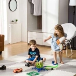 De elegante HUMBI-schuimmat in een neutraal grijs-wit dambordpatroon past in de kinderkamer én de woonkamer. Biedt comfort en veiligheid tijdens het spelen, is vrij van ftalaten, formamide, BPA en PVC en voldoet aan EN 71 en REACH. Dankzij het puzzelsysteem pas je vorm en grootte aan je ruimte aan, terwijl de randen voor een nette afwerking zorgen.
