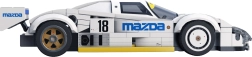 Getrouwe details van de legendarische MAZDA 787B in wit met blauw–gele striping en een opvallende achtervleugel zullen elke motorsportfan bekoren.