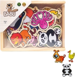 De set bevat dieren zoals een giraf, dolfijn, pinguïn en andere diverse wezens. De magneten zijn niet alleen vermakelijk, maar ook educatief en zijn een geweldige tool voor het verbeteren van het herkennen van dieren en kleuren.