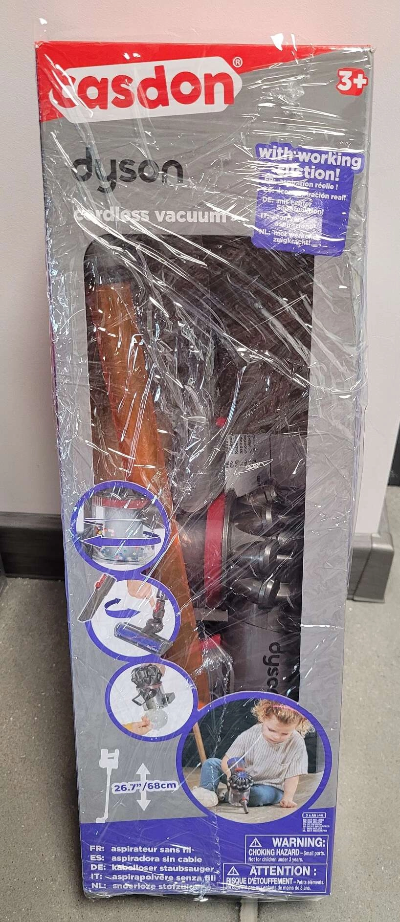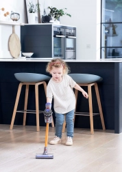 Deze kinder draadloze steelstofzuiger van CASDON, geïnspireerd door het iconische DYSON-ontwerp, zal kleine schoonmaakfans enthousiast maken. In een aantrekkelijke grijs-oranje combinatie met een transparante opvangbak kunnen kinderen volwassenen nadoen en spelenderwijs verantwoordelijkheidsgevoel ontwikkelen. Let op: dit is een defect outlet-exemplaar – de stofzuiger werkt niet en vertoont gebruikssporen; dient als dummy zonder effecten.