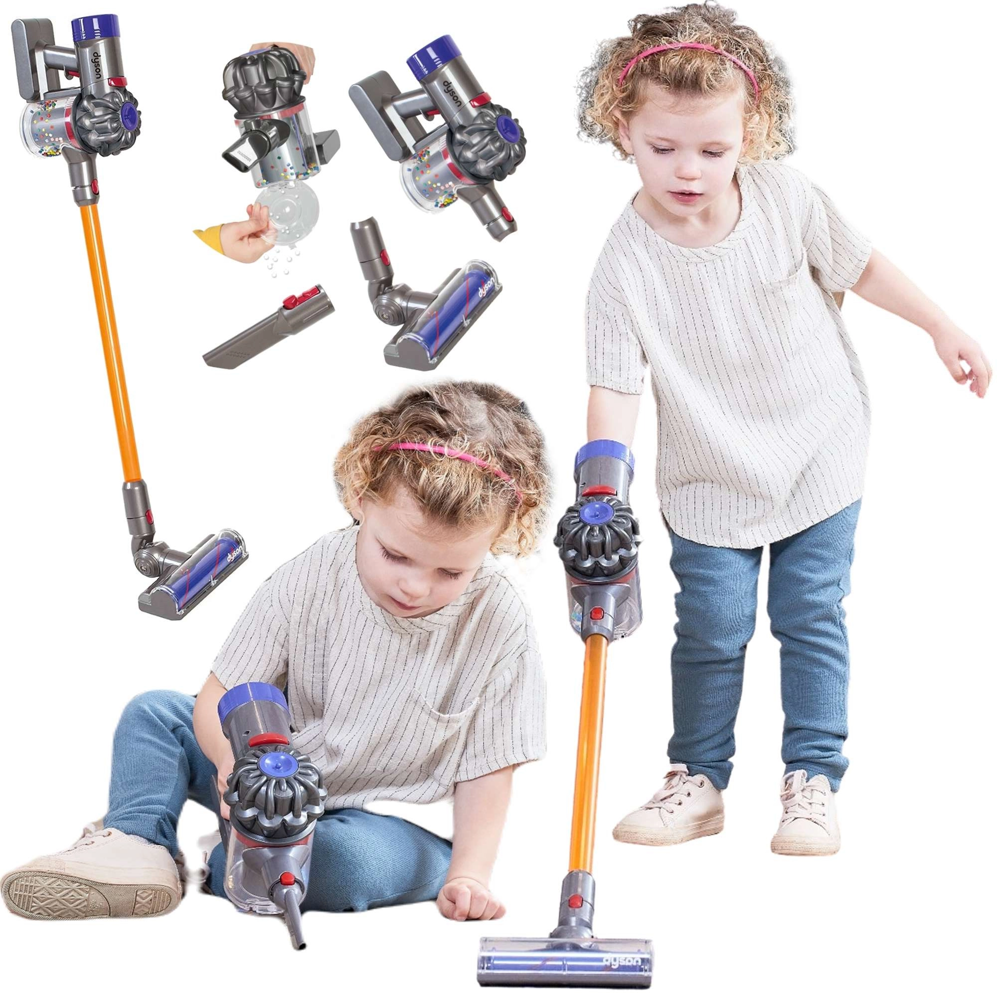 De authentieke look met slanke steel, transparante opvangbak en een kop voor “schoonmaken” van vloeren geeft kinderen het gevoel echt in het huishouden te helpen.