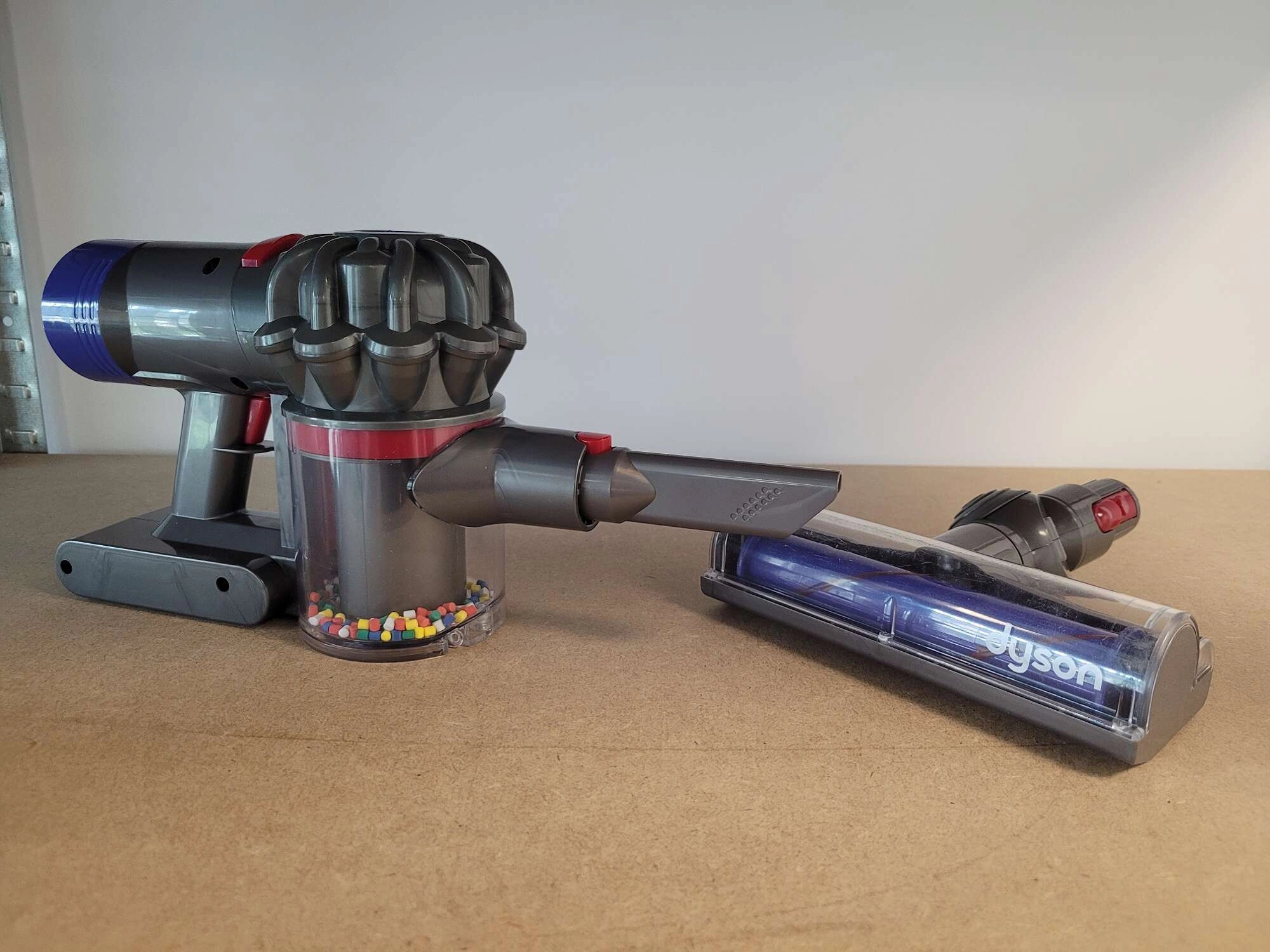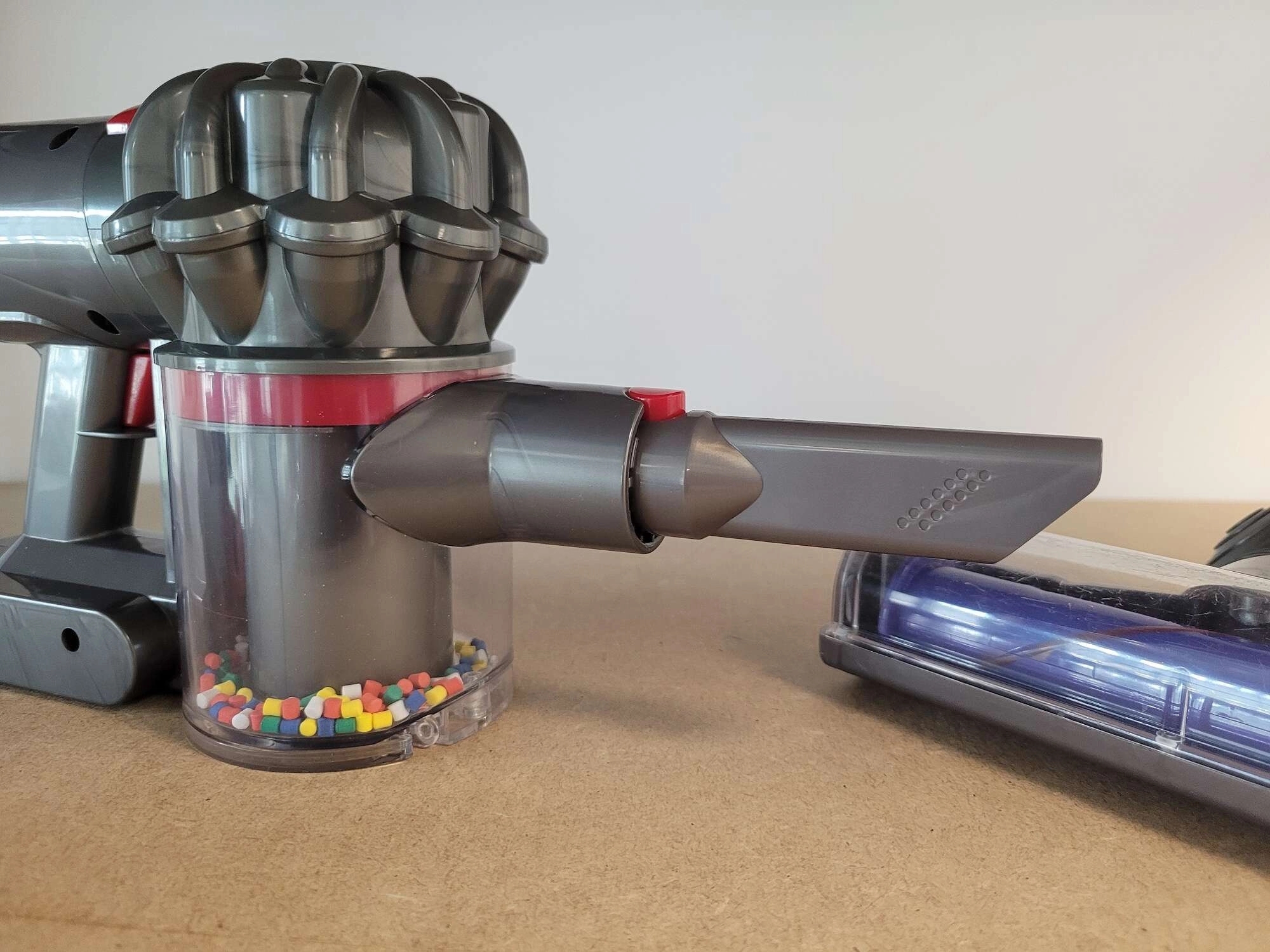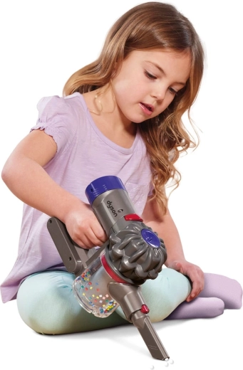 Geef kinderen plezier in het “schoonmaken” thuis met de replica van de draadloze CASDON DYSON-stofzuiger. Dankzij de realistische look, de doorzichtige opvangbak en afneembare accessoires is het spel boeiend, veilig en ondersteunt het rollenspel. Dit outlet-exemplaar is geschikt als rekwisiet voor kinderspel zonder functionele zuigkracht.