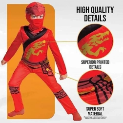 Het originele kostuum, geïnspireerd door de populaire serie NINJAGO en LEGO-speelgoed, zal alle liefhebbers van actieavonturen blij maken. Dankzij de gedetailleerde afwerking en de comfortabele pasvorm kruipen kinderen moeiteloos in de huid van de dappere Kai.