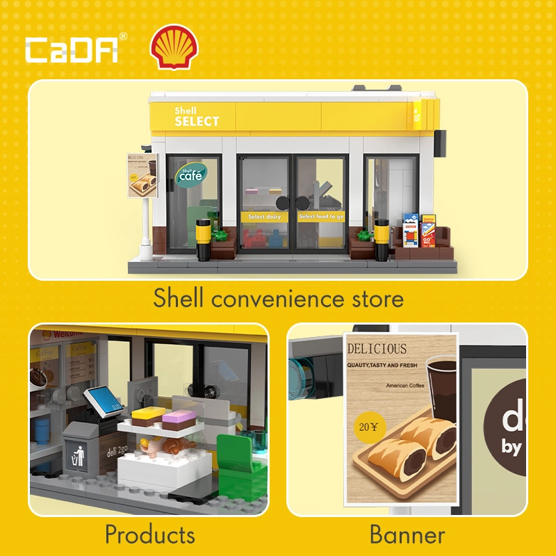 De CaDA-bouwset brengt een gedetailleerd uitgewerkt eenspannings mini-winkeltje SHELL met realistische elementen zoals schuif/openslaande deuren, vitrines, posters en interieuruitrusting. Ideaal voor kinderen vanaf 8 jaar en volwassen bouwfans die houden van precisie en een stijlvolle displayset.