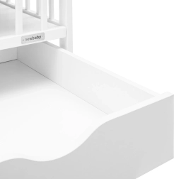 De ingebouwde lade biedt voldoende ruimte voor het opbergen van beddengoed en babybenodigdheden. Ze schuift soepel uit en raakt de vloer niet.