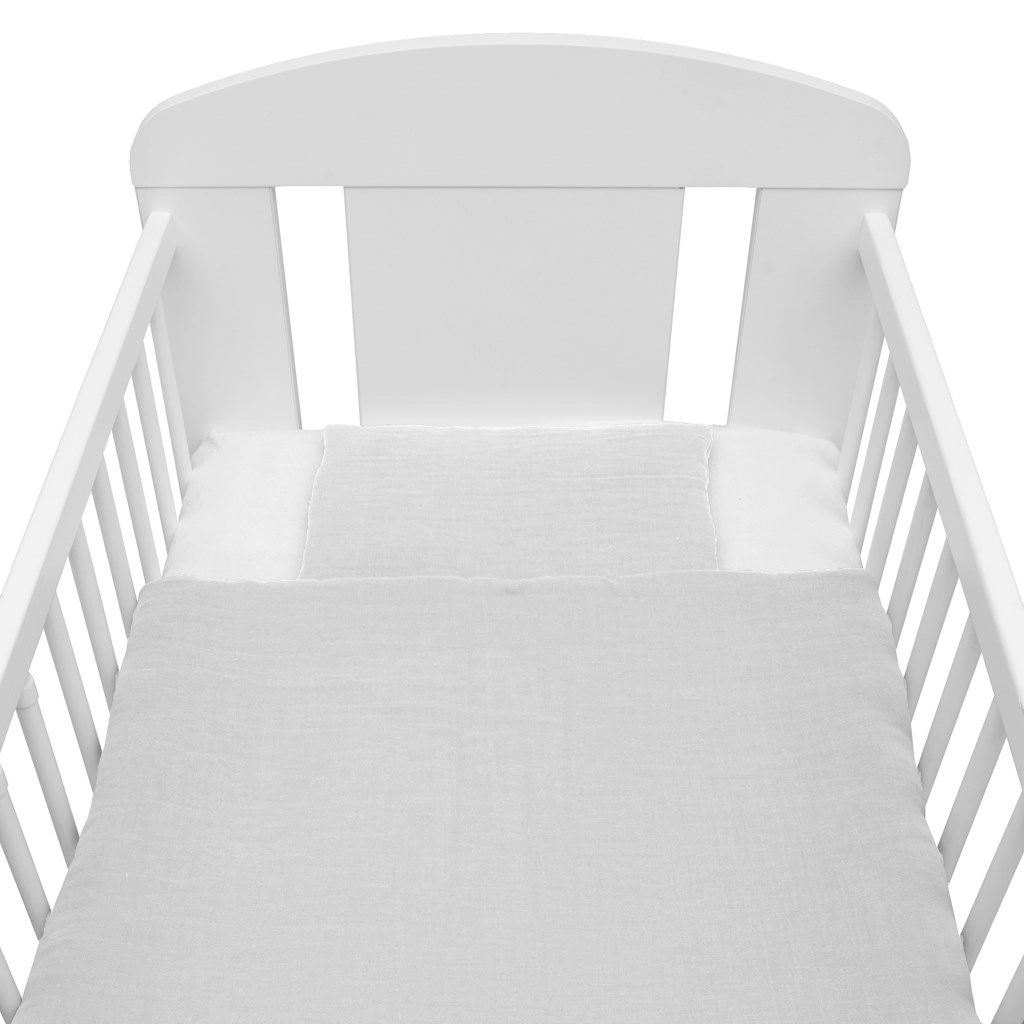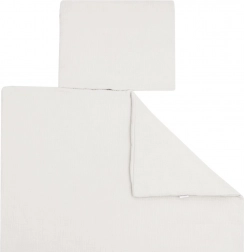 Een zacht mousselineset met vulling voor baby’s, bestaande uit een kussen en een dekentje, ideaal voor wieg, kinderwagen en Mozesmand. Gemaakt van hoogwaardige mousseline met een antiallergische vulling die ademend is, zacht voor de babyhuid en zorgt voor een comfortabele slaap vanaf de eerste levensdagen. Alle materialen zijn getest en voldoen aan OEKO‑TEX STANDARD 100.