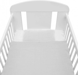Ontdek de lichtheid en het comfort van mousseline – een van de zuiverste en zachtste weefsels. Dankzij de ademende structuur “ademt” mousseline, bevordert het de luchtcirculatie en helpt het oververhitting te voorkomen. De set is gevuld met antiallergische vezels die zacht zijn voor de gevoelige babyhuid.
