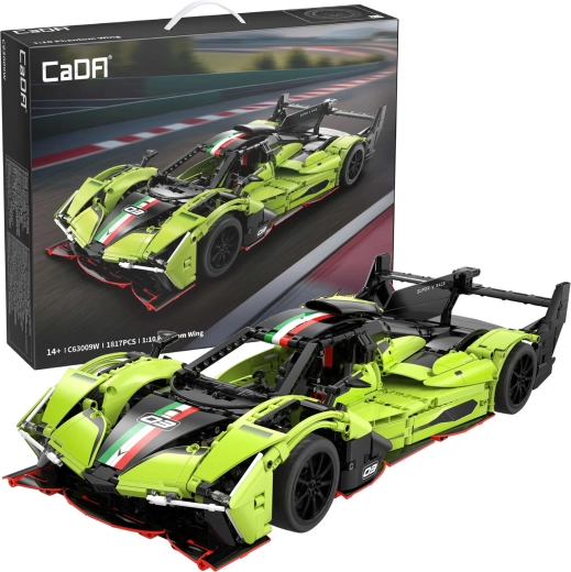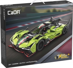 Het CaDA PHANTOM WING model biedt een intense bouw- en displayervaring. De aerodynamische groene carrosserie, doordachte interieurdetails en functionele elementen – van besturing tot vering – zorgen voor een authentieke look en beweging van een raceauto. Na het bouwen meet de auto ongeveer 54 × 13,5 cm, wat hem zowel in de vitrine als voor het spelen indrukwekkend maakt.