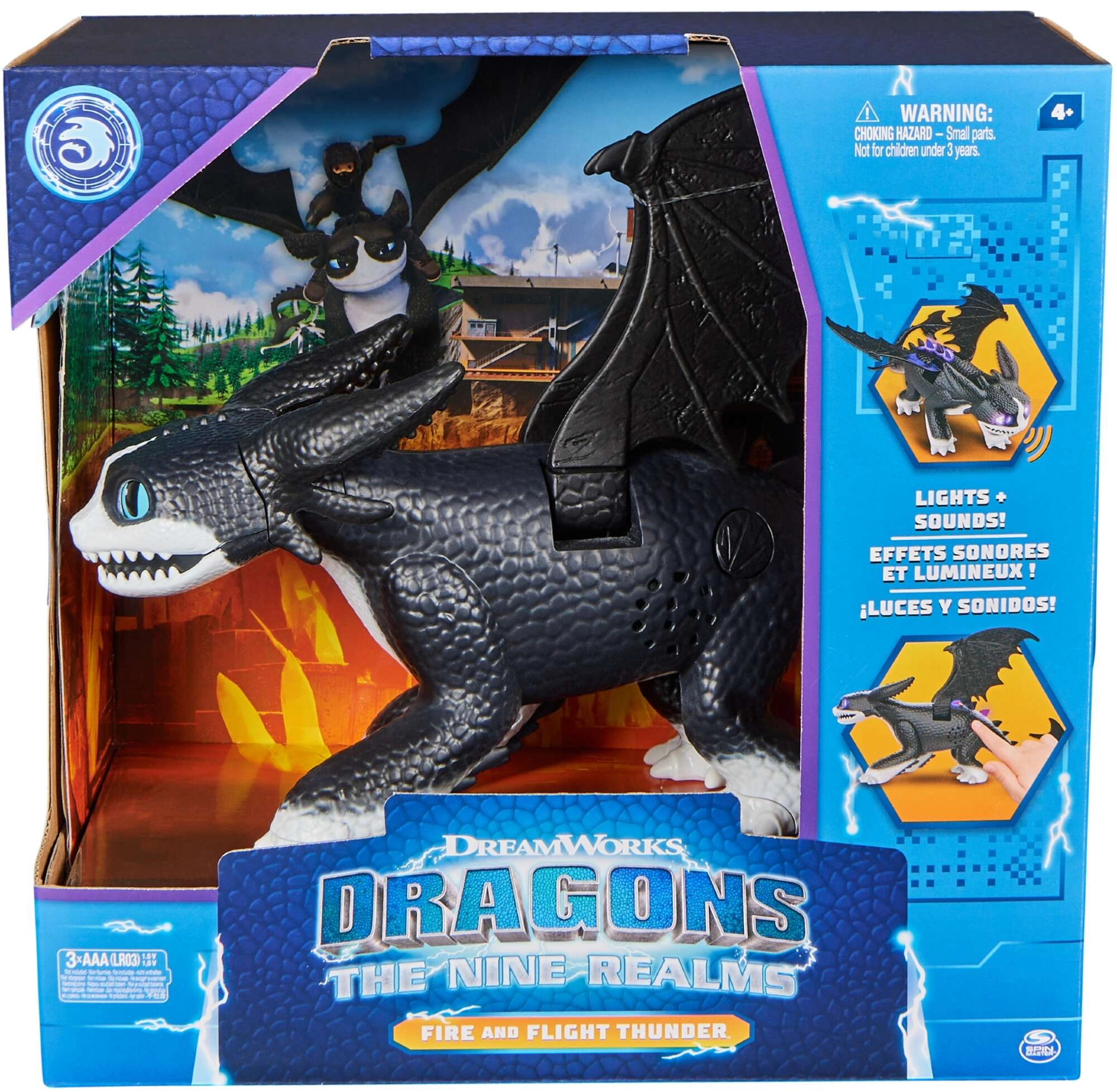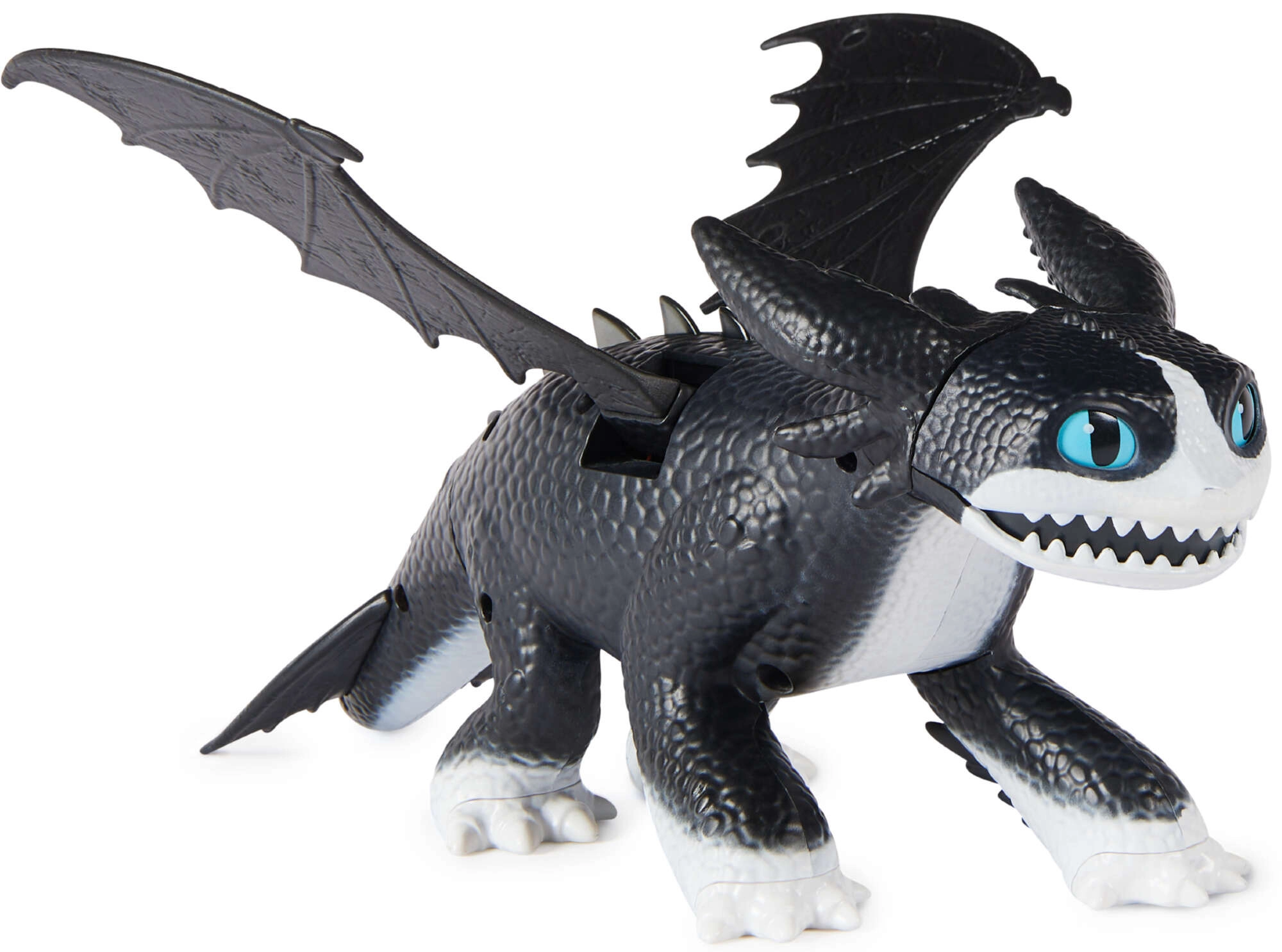 Activeer de drakenbrul en paarse verlichting van de stekels en bek voor adembenemende actie zoals in de film.