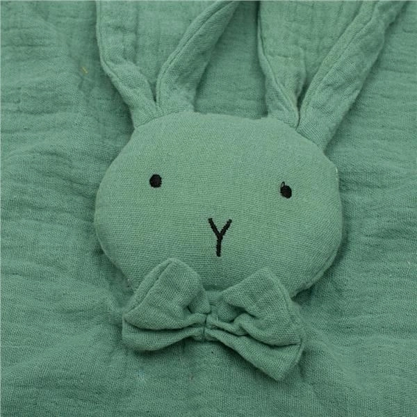 Schattig mousseline knuffeldoekje New Baby Rabbit in mintkleur, een heerlijk zacht maatje voor baby’s vanaf de eerste levensdagen. Gemaakt van 100% biologische katoen, zacht aan de aanraking, biedt een gevoel van veiligheid en maakt inslapen makkelijker. Het minimalistische design en de fijne kleuren passen mooi bij andere mousseline producten.