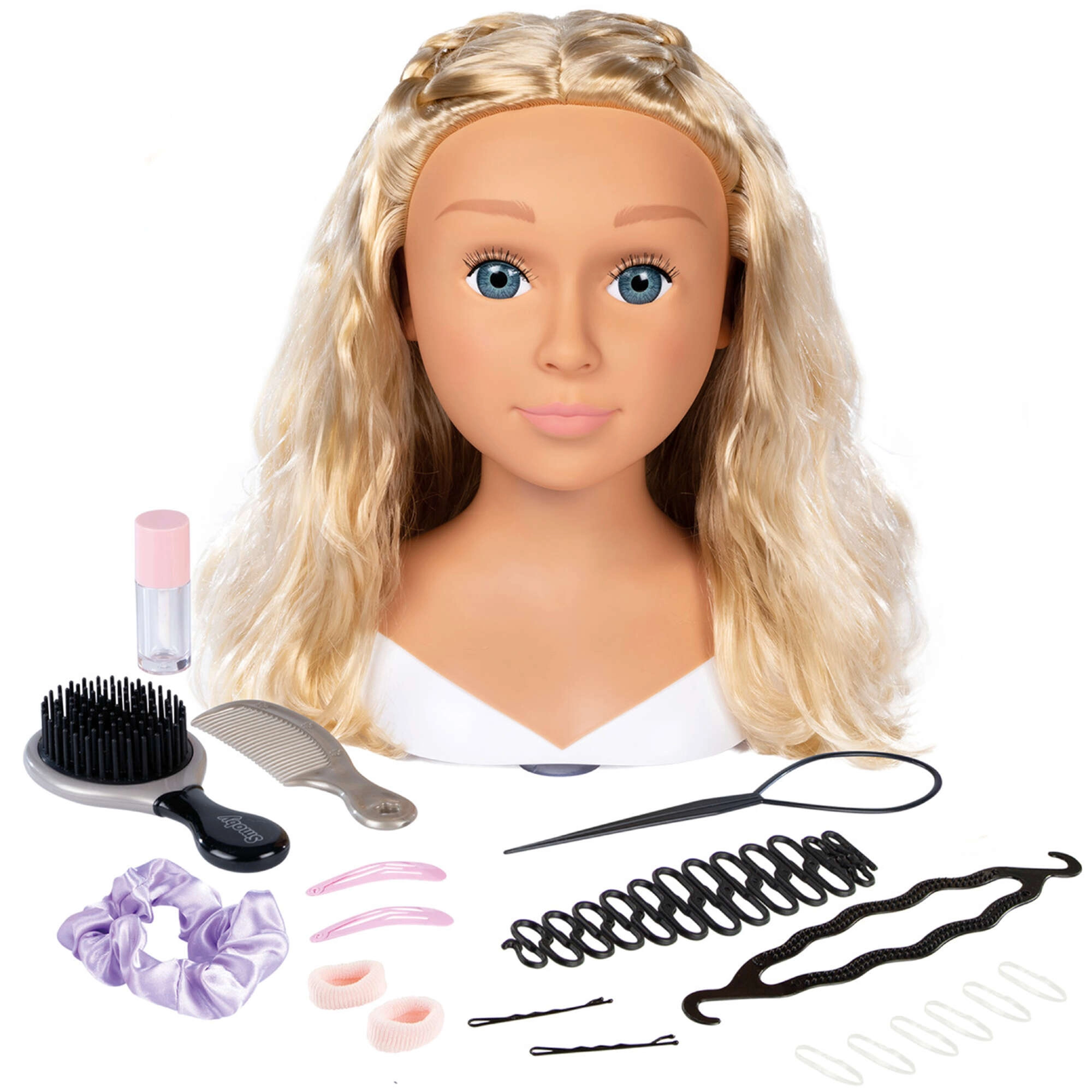 Dit realistische stylinghoofd is een ideale set voor kleine kappers en visagisten. De lange, glanzende synthetische blonde haren houden goed hun vorm en kunnen steeds opnieuw worden gekamd, gevlochten en gestyled tot tientallen kapsels. De stabiele basis vergemakkelijkt het werk en accessoires zoals borstel, kam, speldjes, elastiekjes en vlechttools openen de deur naar onbeperkte creativiteit.