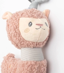 De schattige pluchen lama New Baby met geluid biedt je baby zachtheid, een rustgevende melodie en vermaak onderweg. Dankzij de praktische clip bevestig je hem gemakkelijk aan kinderwagen, autostoeltje of ledikant. Zachte pluche, verschillende texturen en geluidselementen ondersteunen de ontwikkeling van de zintuigen en de natuurlijke nieuwsgierigheid van je kind. Geschikt vanaf de geboorte.