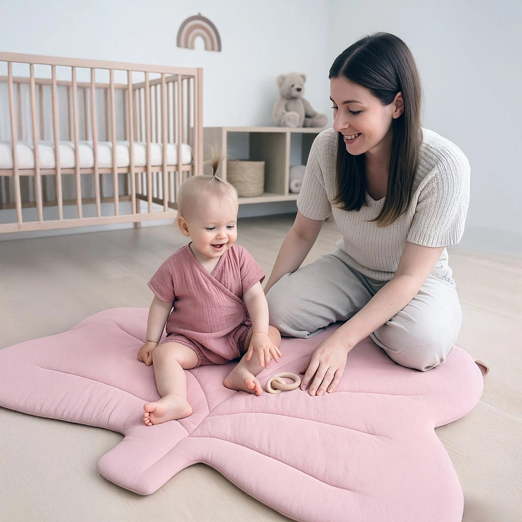 Dit premium mousseline speelkleed is ideaal voor dagelijks spelen en uitrusten van je baby. Dankzij de afmetingen 107 × 100 cm biedt het een comfortabele ruimte en dankzij de esdoornbladvorm wordt het een stijlvolle toevoeging aan de kinderkamer.