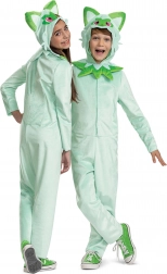 Betreed de wereld van POKEMON met het comfortabele kigurumi-kostuum van Sprigatito. De lichtgroene onesie met bladkraag en capuchon met ogen en oortjes biedt de complete look van het geliefde personage. Dankzij de rits aan de voorkant is hij gemakkelijk aan en uit te trekken en perfect voor spel, feestjes en schoolcarnaval.