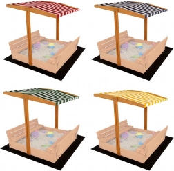 De overkapping past op alle gangbaar verkochte zandbakken met een afmeting van 120 × 120 cm. Voorgeboorde montagegaten en de meegeleverde papieren handleiding zorgen voor een snelle en eenvoudige installatie. De complete set is veilig verpakt in een stevige kartonnen doos, zodat alles in perfecte staat wordt geleverd.