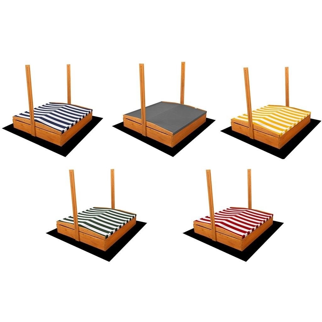 Geniet van zorgeloos buitenspelen. Dit zonnescherm voor een zandbak van 120 × 120 cm combineert een robuuste houten constructie met een hoogwaardig doek in rood-wit gestreept patroon. Het biedt schaduw en bescherming tegen lichte regen en kan bovendien tot aan de rand worden neergelaten, zodat de zandbak schoon en beschermd blijft.