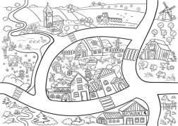 Kleur de details van huisjes, tuinen en wegen in en stimuleer fantasie en fijne motoriek. Als je alle zes kleurplaten uit deze serie aanschaft, kun je ze eenvoudig samenvoegen tot één groot geheel dat op elkaar aansluit met een wegmotief – een geweldige decoratie voor de kinderkamer of het klaslokaal.