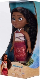 De MOANA pop, geïnspireerd door Disney’s MOANA 2, brengt kinderen de authentieke look van de geliefde heldin: lang, vol haar om te stylen, expressieve donkere ogen en een traditionele Polynesische outfit – een lichte top met rode patronen en een rode rok met tropische print. Een schelpenketting benadrukt haar band met de oceaan.