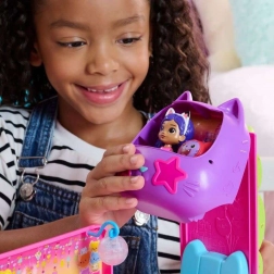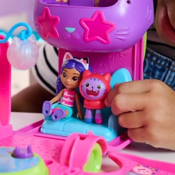 De partybus uit de populaire serie Gabby’s Poppenhuis verandert in een oogwenk van rijdende bus in een stijlvolle feetscène. Klap de voorkant open en kantel de bestuurderscabine – binnen wacht een dansvloer, kattensofa en een draaibaar karaokepodium. Dankzij het compacte ontwerp en de wieltjes is de set ideaal voor onderweg en thuis.
