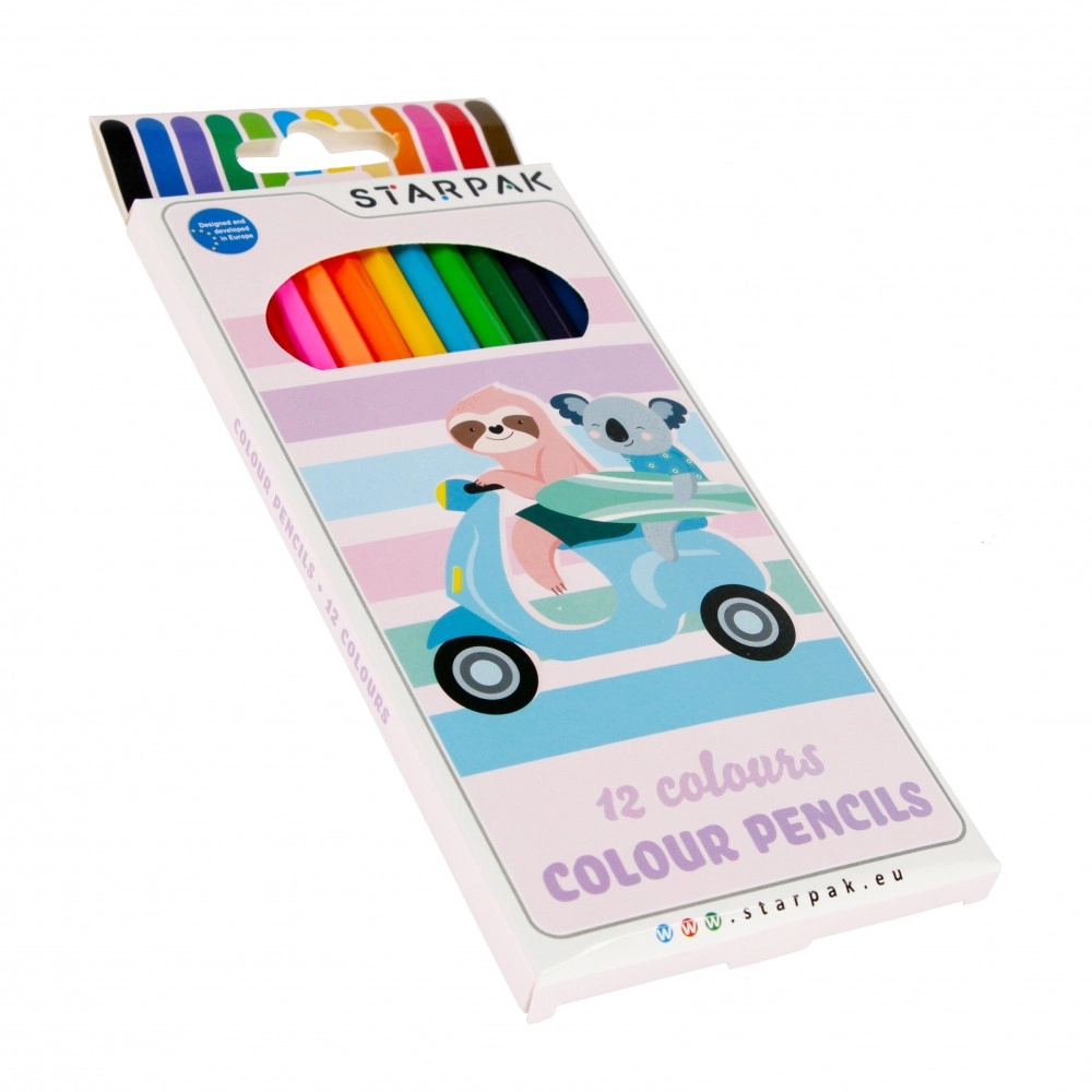 Vrolijke set kleurpotloden met luiaard-motief voor kleine én grote kunstenaars. Bevat 12 heldere kleuren, een comfortabele lengte van 18 cm voor makkelijk vasthouden en is geschikt voor kinderen vanaf 3 jaar. Ideaal voor school, peuterspeelzaal en knutselen thuis.