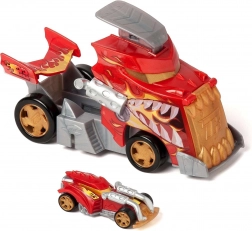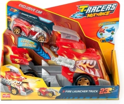 De set T-Racers Mix ’N Race Fire Launcher Truck biedt kinderen dynamische races en de vrijheid om zelf te bouwen. De draak-stijl vrachtwagen vervoert je autootjes en stuurt ze dankzij de geïntegreerde lanceerramp met bliksemsnelheid vooruit. Inclusief een exclusieve racewagen waarvan de onderdelen te combineren zijn met andere modellen uit de Mix ’N Race-lijn.