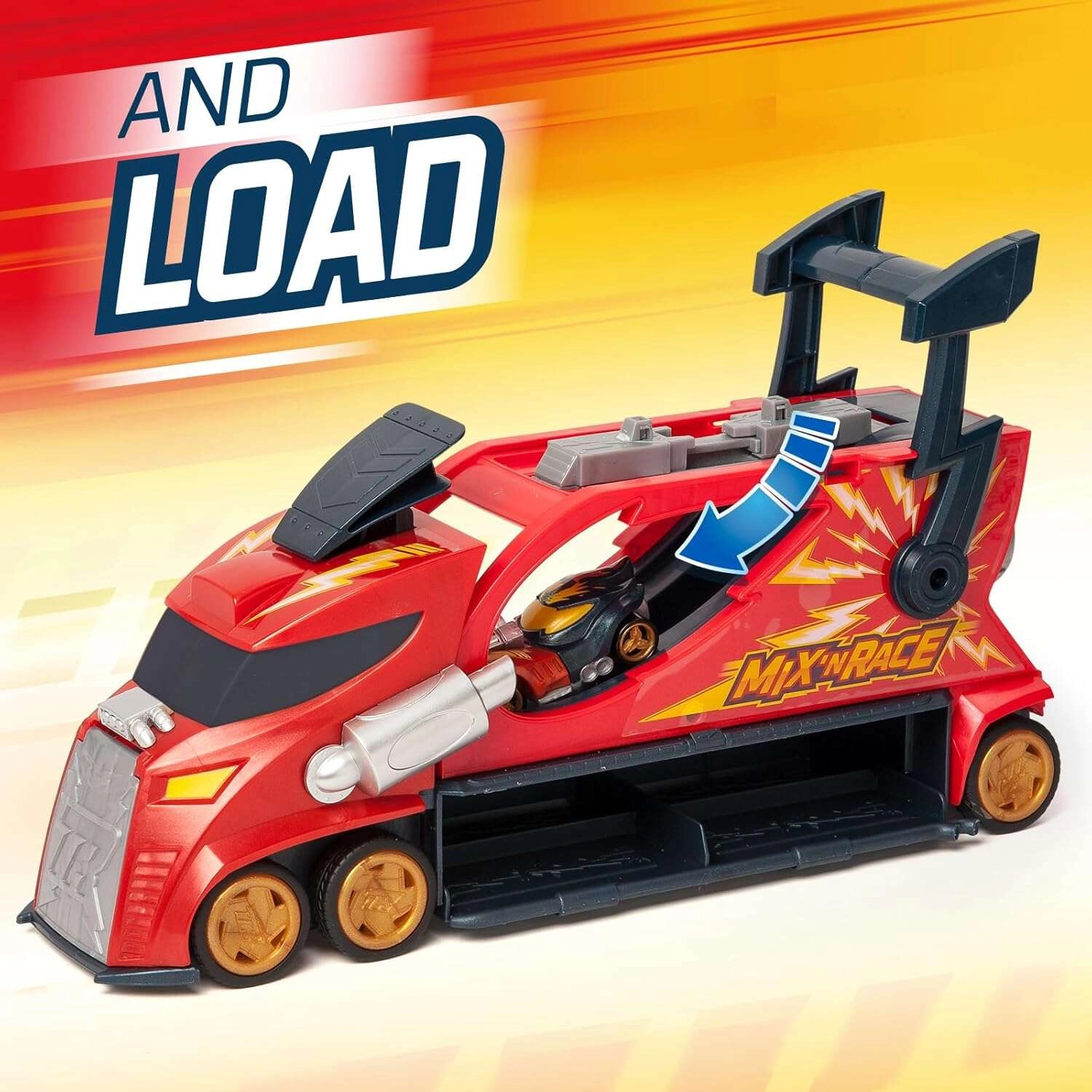 Ontdek de wereld van races met de T-RACERS Mix n Race Thunder Truck – een multifunctionele vrachtwagen, lanceerder en autokoffer 3-in-1. Binnenin is plaats voor tot 3 T‑RACERS autootjes en dankzij de verwisselbare onderdelen kunnen kinderen hun wagens mixen en personaliseren naar eigen fantasie. Robuuste afwerking, eenvoudig in gebruik en snelle start met één druk garanderen uren actievolle pret.