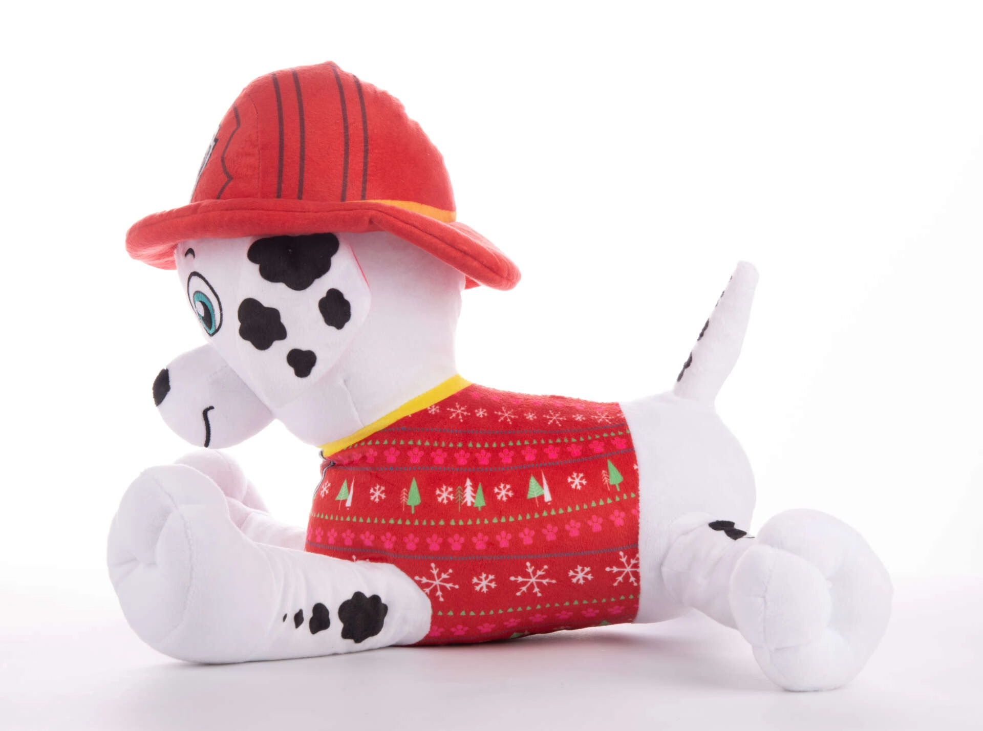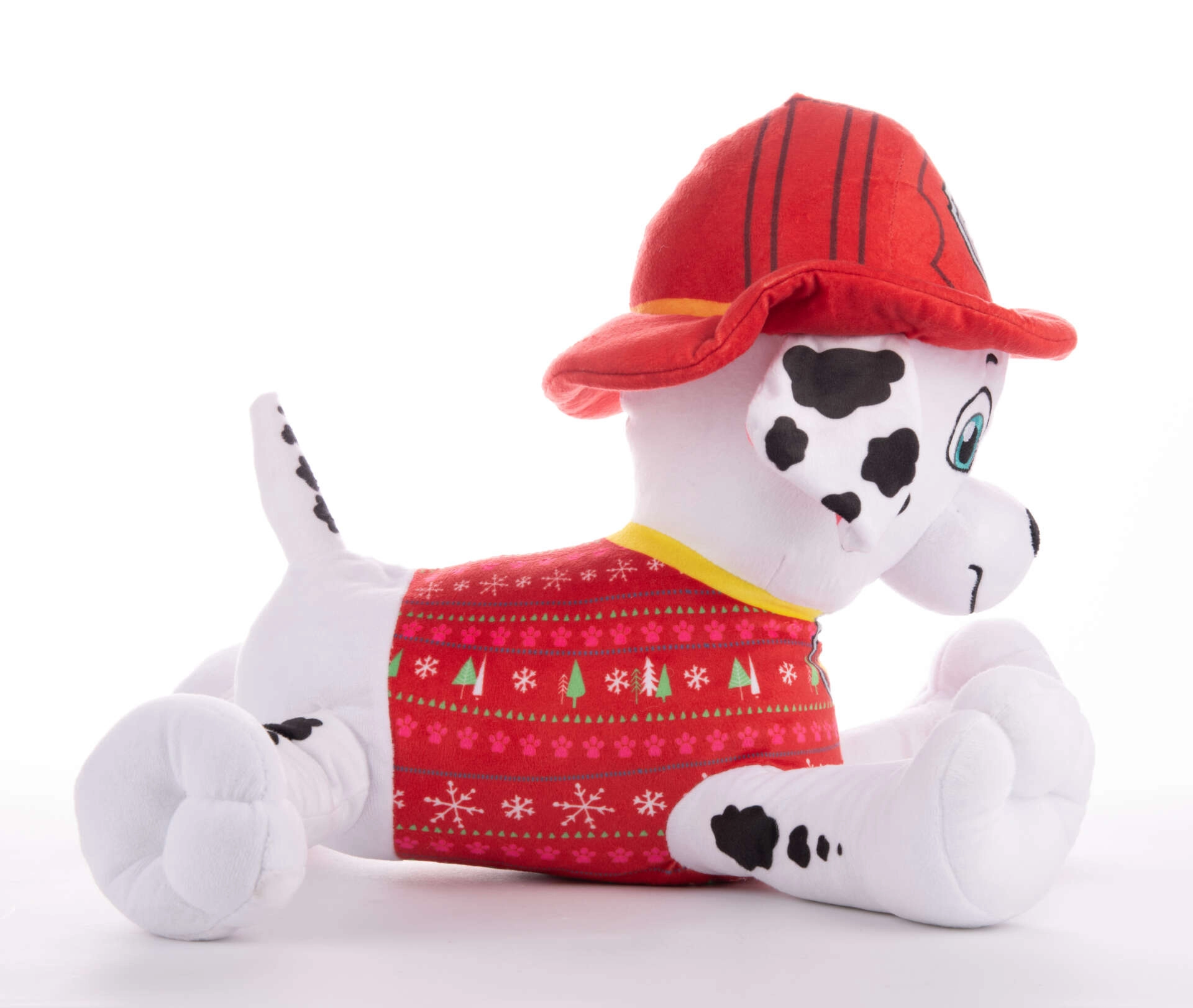Het design wordt aangevuld met een feestelijke rode trui met winterse motieven en een badge die Marshalls heldenrol benadrukt. De knuffel is gemaakt van een zachte, aangenaam aanvoelende stof en ligt dankzij de grote pootjes stabiel.
