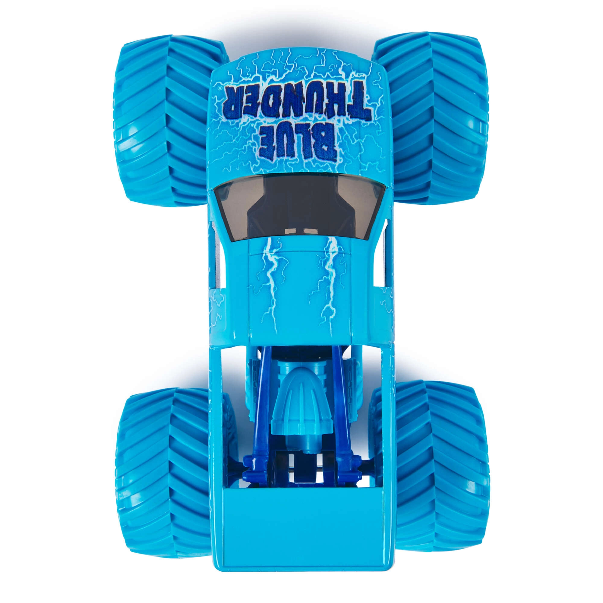 Stevig metalen body met de kenmerkende Blue Thunder-bliksems en officiële MONSTER JAM-licentie garandeert een natuurgetrouwe look en weerstand bij intensief spelen.