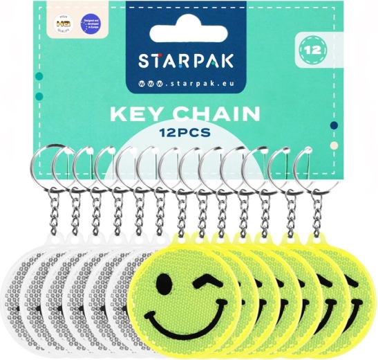 Vrolijke reflecterende hanger met smiley voor extra veiligheid en plezier onderweg. Met een diameter van ca. 7 cm en een reflecterend oppervlak vergroot hij je zichtbaarheid in schemer en donker. Keuze uit 2 varianten, de hanger heeft een metalen ring en kettinkje voor eenvoudig bevestigen aan sleutels, rugzak of tas. Verpakking per 12 stuks, prijs is per 1 stuk. Geschikt voor kinderen vanaf 3 jaar.