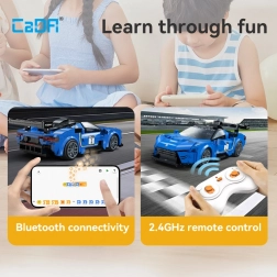 Dankzij de Dual Mode kun je de auto bedienen met de meegeleverde 2,4 GHz controller of eenvoudig via de Bluetooth-app (Android/iOS) met een bereik van ongeveer 25 meter. Het model haalt een snelheid tot 3,6 km/u, is compatibel met andere CaDA-sets en stimuleert fijne motoriek, creativiteit en technisch inzicht.