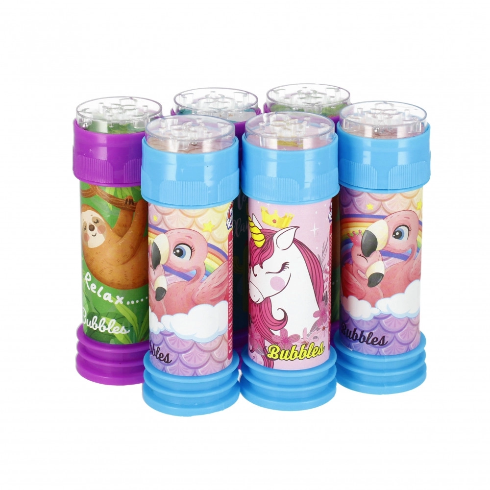 Kies uit 4 speelse designs (bijv. eenhoorn, luiaard, flamingo, lama) en geef kinderen een veilige, geliefde activiteit voor speelplaats, feestjes en uitstapjes. 55 ml vloeistof zorgt voor veel belletjes en uren vreugde.