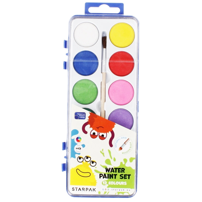 Deze set waterverf biedt alles wat je nodig hebt voor snel en comfortabel schilderen – in de verpakking vind je 12 kleuren en een kwalitatief penseel. De compacte afmetingen maken het eenvoudig mee te nemen naar school of op reis, waardoor de set een geweldige keuze is voor creatieve kinderen en beginnende kunstenaars.